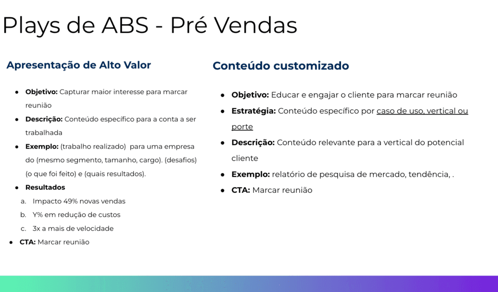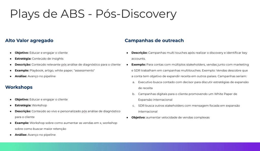 Por fim, ABS requer rituais estruturados de planejamento por conta, mapeamento de stakeholders e cadências personalizadas.